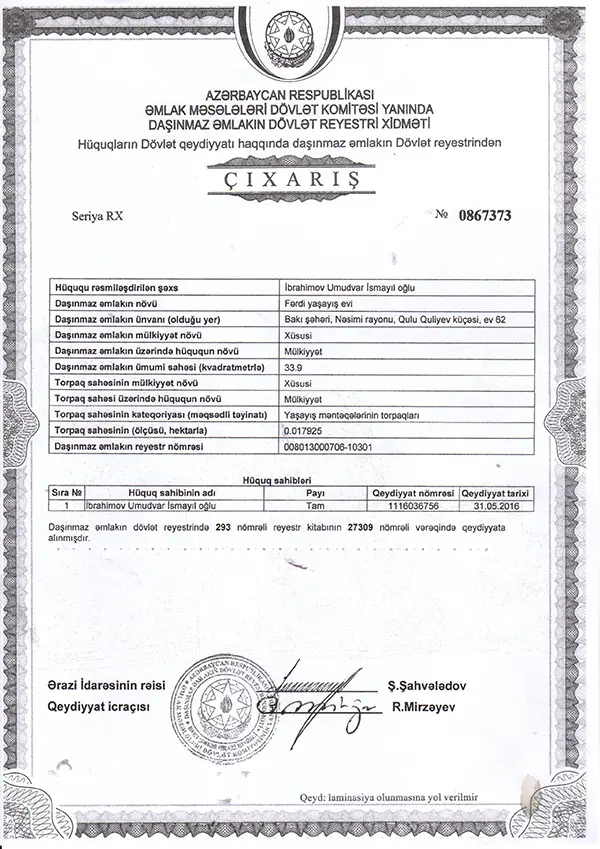 Binanın bütün komunikasiya xətləri, o cümlədən, işıq, qaz və su-kanalizasiya sistemi çəkilmişdir.