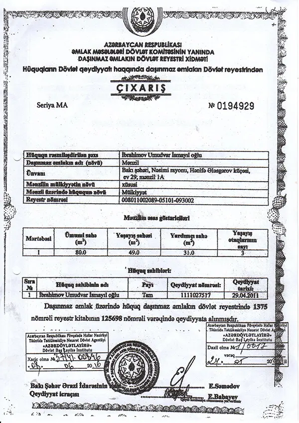 Binanın bütün komunikasiya xətləri, o cümlədən, işıq, qaz və su-kanalizasiya sistemi çəkilmişdir.